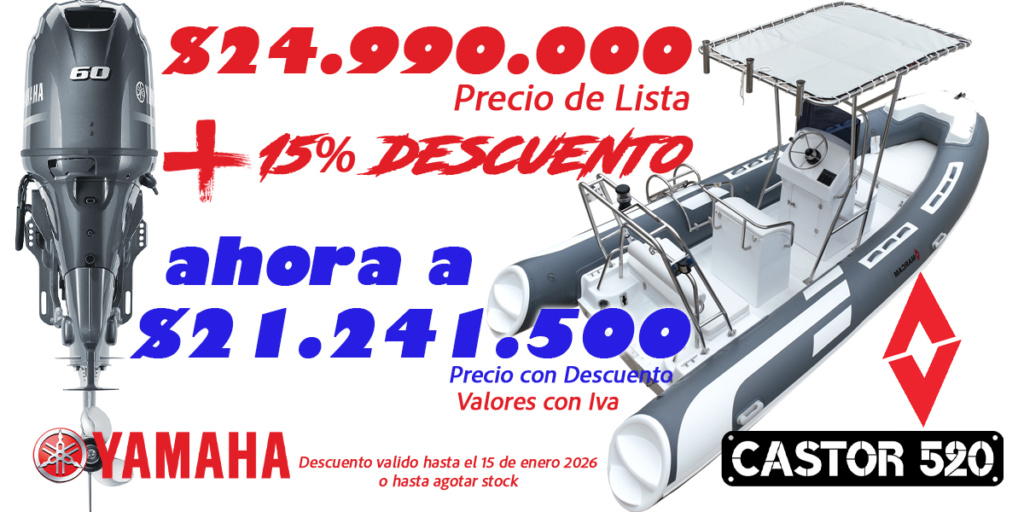 | Castor 520 | 60 HP | YAMAHA | $24.990.000 | Inmediata |